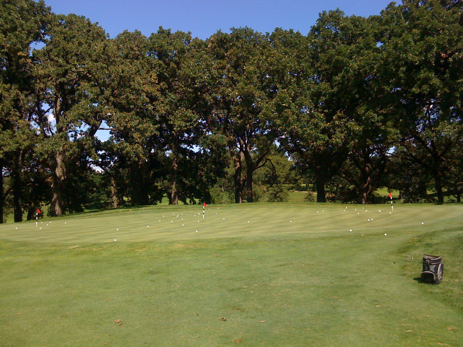 The picture on left shows three pin targets for pitches, easily the most important part of the game to transition to hitting in the eighties. I tend to use my 60 degree wedge for these and feel a bit lost without it, even though this means I have to give up something long like a 3 wood (because I also carry a gap -52 degree- wedge). The pitching is serviceable, but not brilliant. Must keep head down.