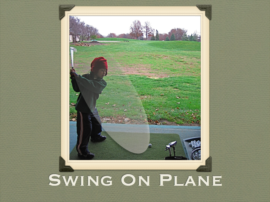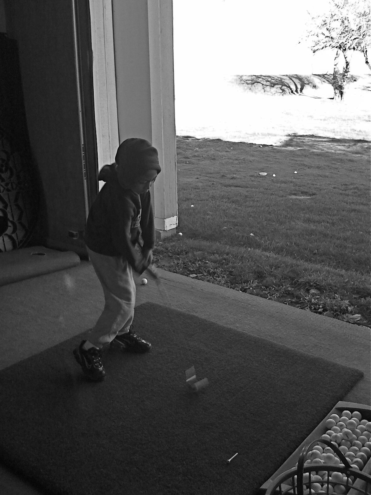 The great thing about watching a kid swing a club is that left alone, they will fall into the most efficient pattern of swinging. This is seen in the picture above (taken with iPhone btw), where the club is perfectly aligned, and the hand and arms are in perfect position. It was a slight toe hit, but the groove is setting in.