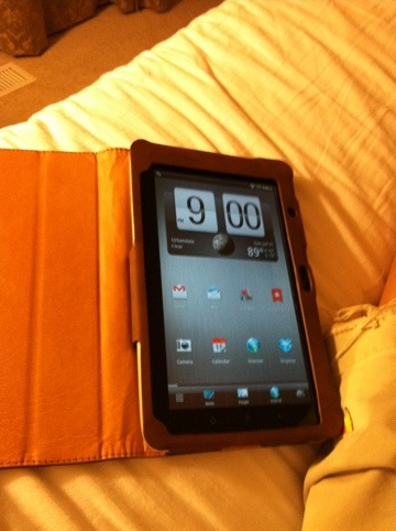 HTC recently sent an OTA (over the air) update of the OS. It’s not Honeycomb, but rather an update of Gingerbread which again works perfectly fine for a 7 inch tablet. I hear that the dual core tablets running Honeycomb are susceptible to lag -there is absolutely no lag on this machine and I only rarely get a reboot due to an instability in Sense -at the rate of once every two to three weeks. I used to reboot my Motorola Droid2 every day!