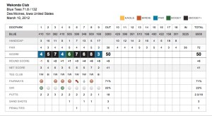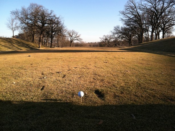 I played my first round of golf at Wakonda for 2012 yesterday. I was in fact the first one to play at 8am -usually there is a morning crew on Saturdays that plays early despite the elements but none were present. I suspect that they like everyone else, was waiting on the 60+ degree weather later in the day. It was around 40 degrees when I teed off, but I was inspired. I parred the first hole which leaves me generally happy if nothing else happens during the round. It was the perfect drive that faded ever so slightly away from the blocking tree on the left and landed 170 yards away from the green. With the pin forward and middle and green elevated about 20 feet, with an aggressive 1-2 club wind cutting left to right, I barrel rolled a slightly drawn 5 iron that lifted into the cross wind and straigtened out, landing hard on the front slope and rolling without momentum onto the green, ending up 8 feet away from the hole. Missing the birdie, I made a 4 footer for par.